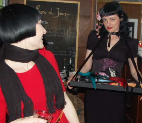 Thanks to Pernod Absinthe and What Katie did for the lovely gifts for our guests and thanks to Burlesuqe Baby.comĀ for the starter courses in burlesque for our audience!