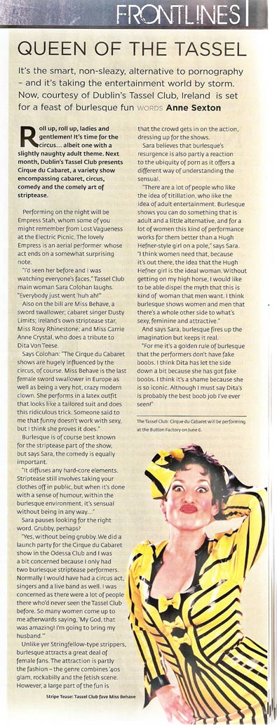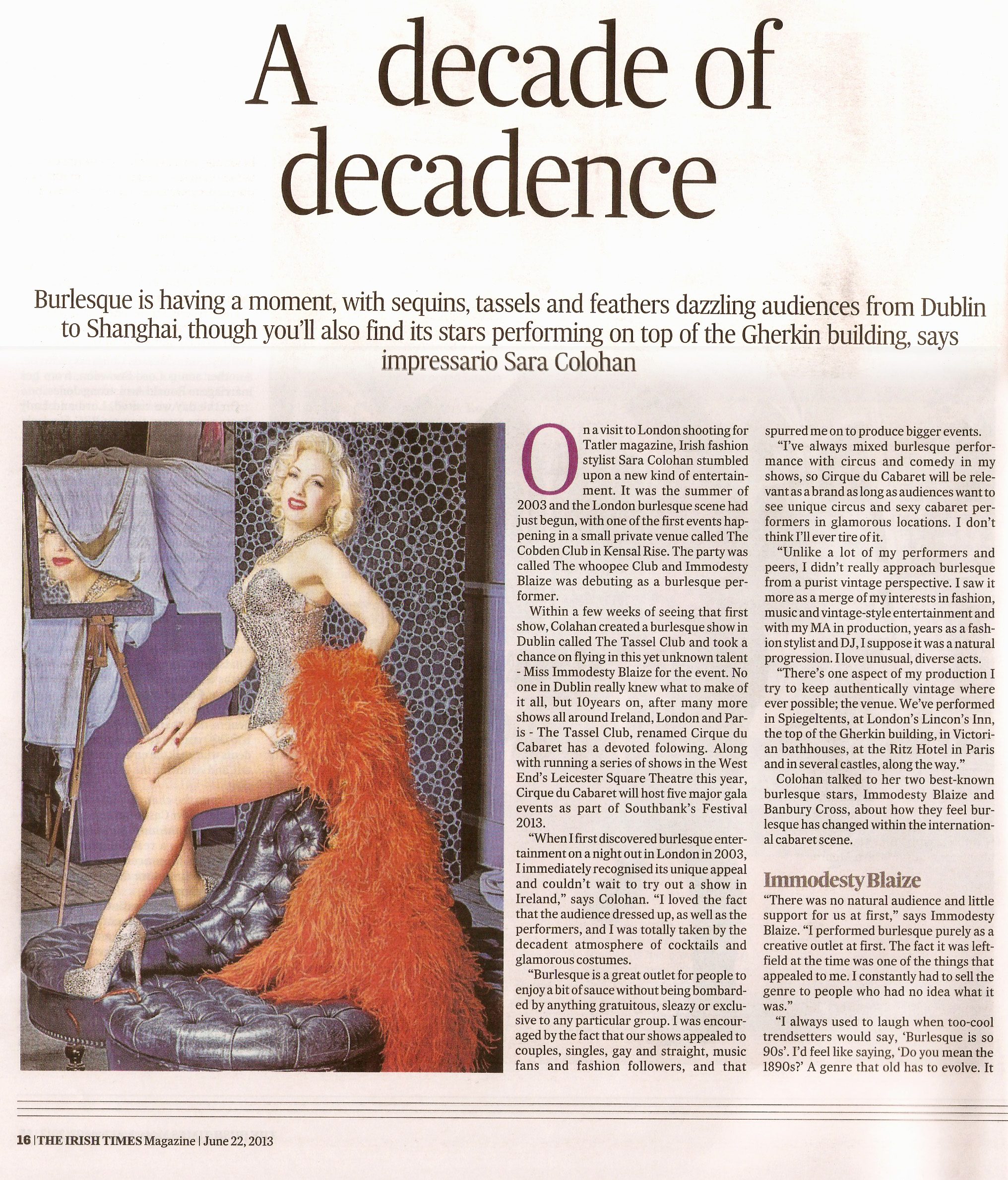 A nice piece about us in The Times 2013 June 22nd featuring Immodesty Blaize, Banbury Cross and photographs by Clive Arrowsmith HERE